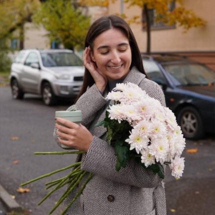 Авторский букет для ARMY “I purple you” с лунной гвоздикой, ирисом и хризантемой