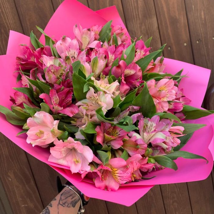 Альстромерия – 17 шт.Лента атласная – 1 шт.Упаковка дизайнерская – 1 шт.