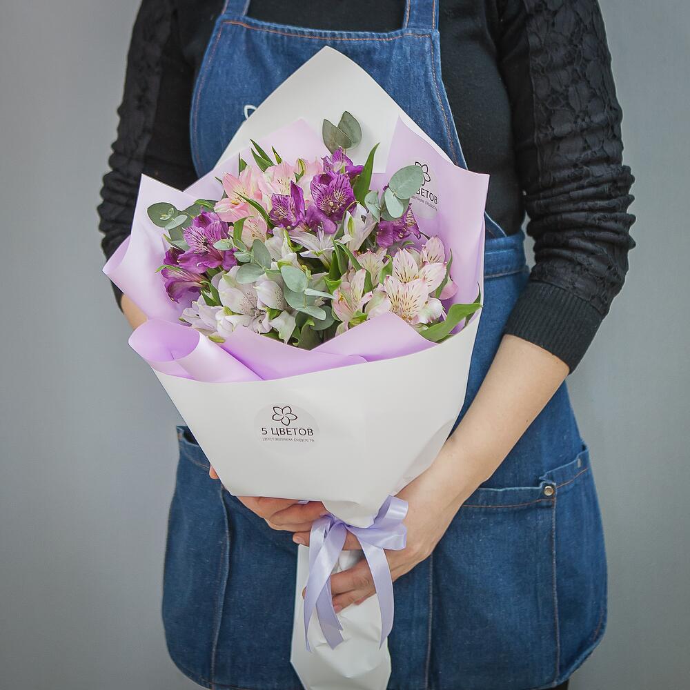 Букет Созвездие из 15 альстромерий и эвкалипта