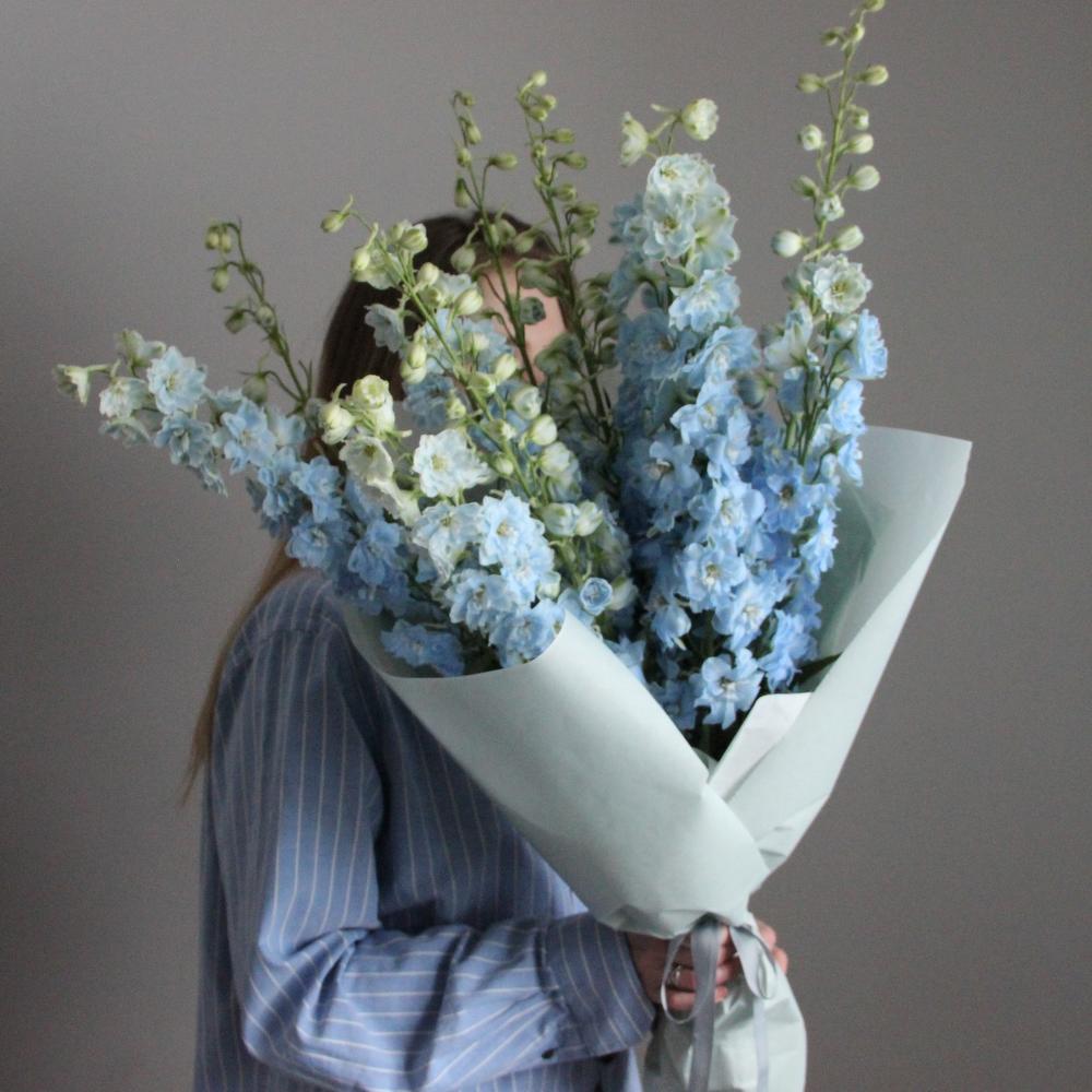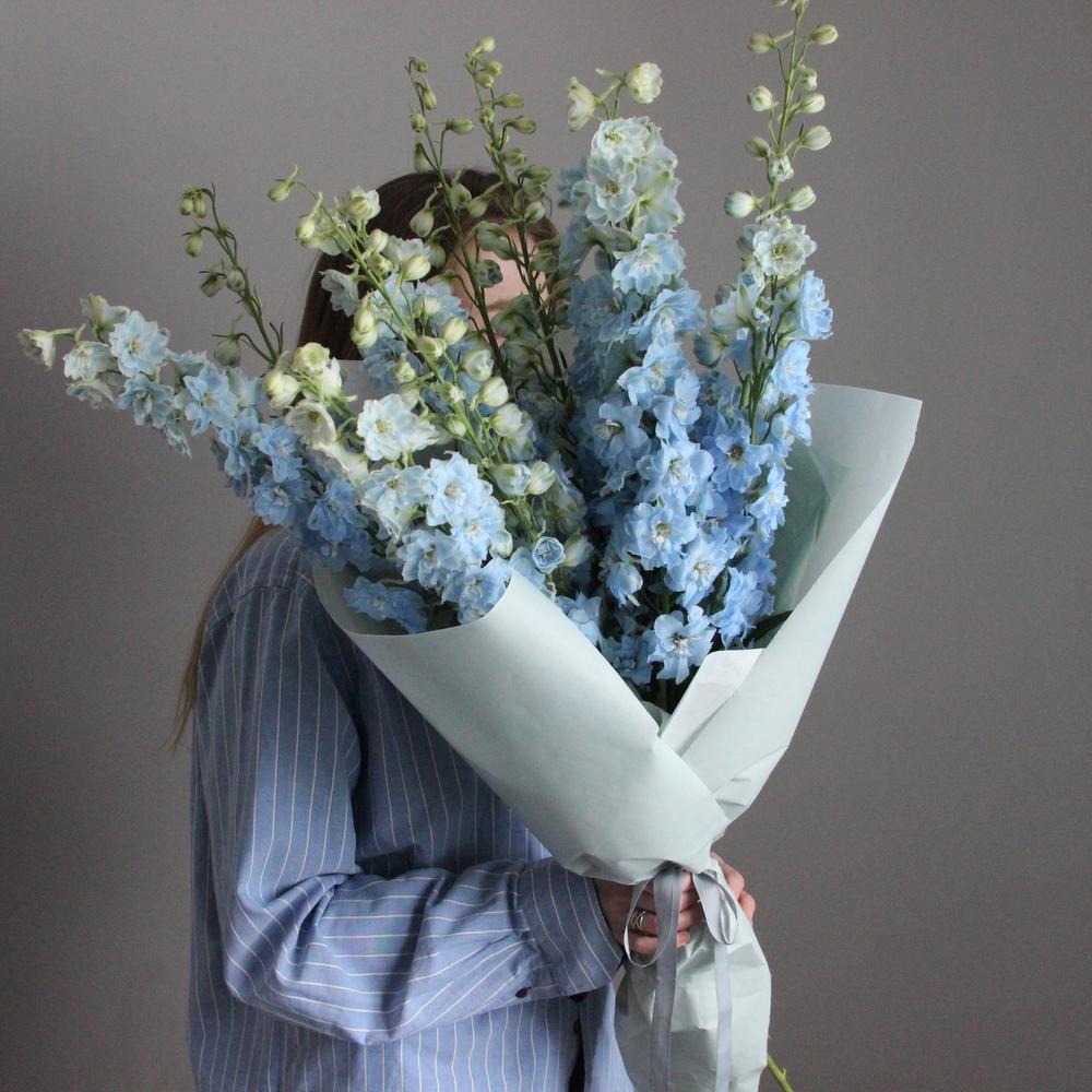 Дельфиниум – 9 шт.Упаковка – 1 шт.Лента атласная – 1 шт.