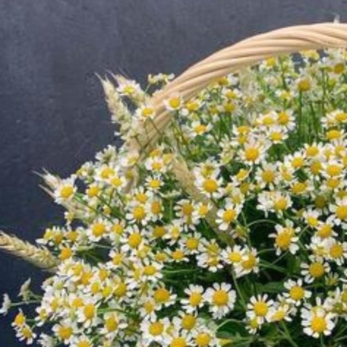 Матрикария – 29 шт.рожь пучок – 1 шт.Фисташка пучок – 1 шт.Оазис флористический – 2 шт.Корзина плетеная – 1 шт.