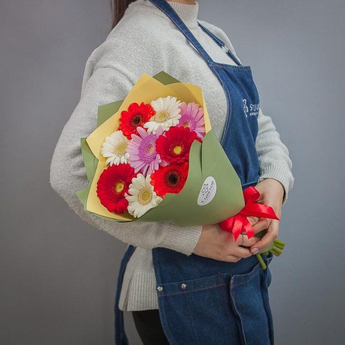 герберы разноцветные – 9 шт.