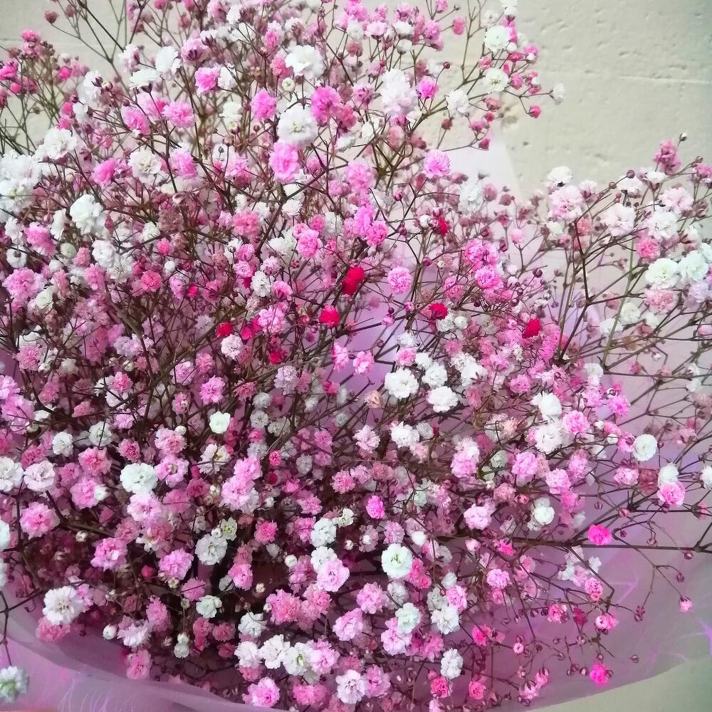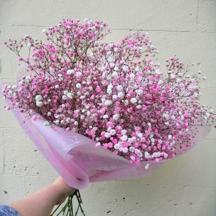 Лента – 1 шт.Упаковка – 1 шт.гипсофила радужная розовая – 9 шт.
