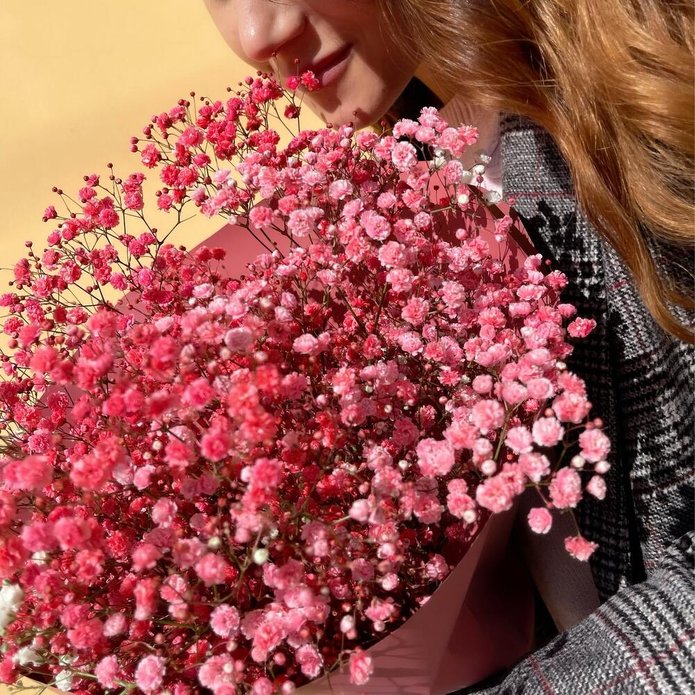 Гипсофила – 5 шт.Лента атласная – 1 шт.бумага матовая – 1 шт.