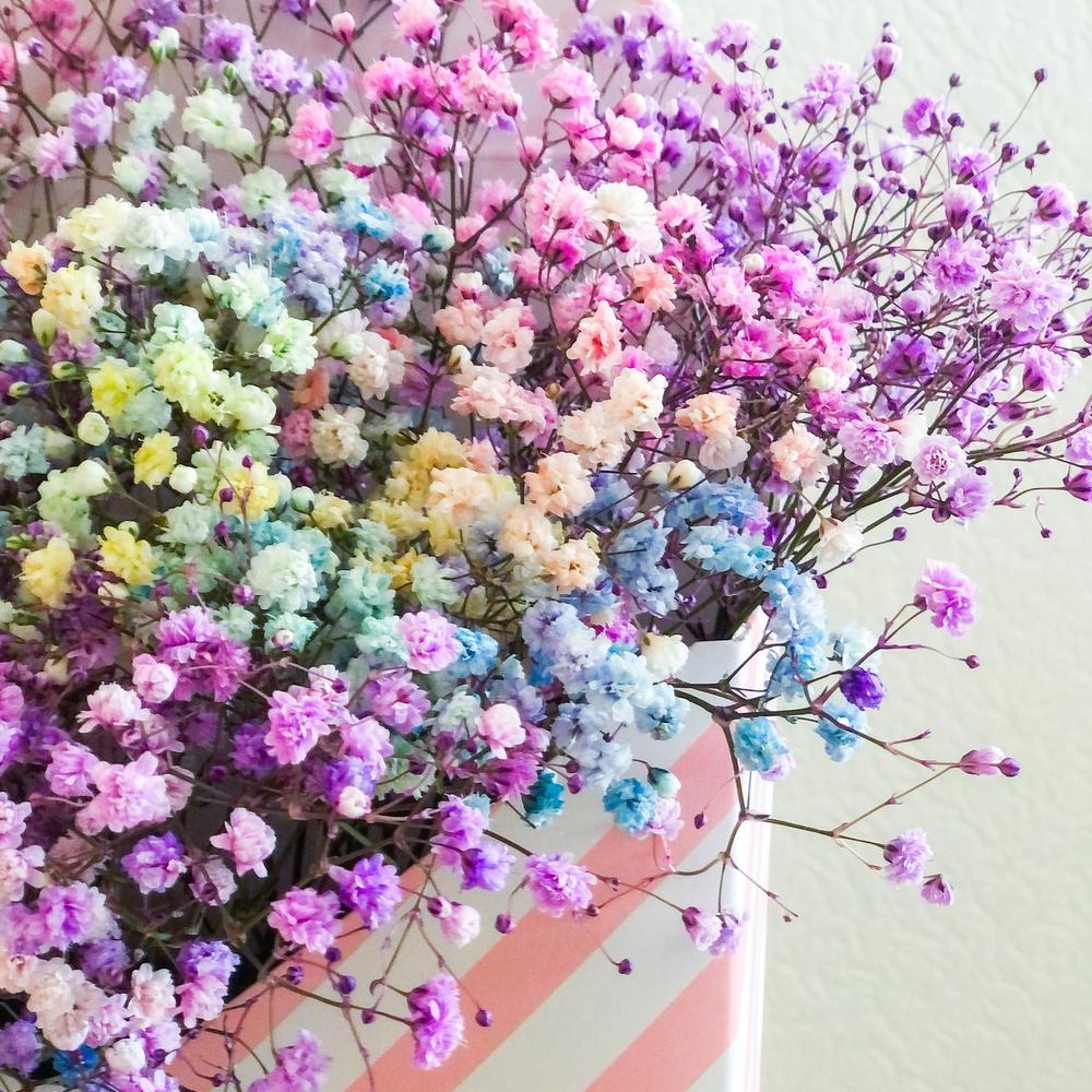 гипсофила цветная – 7 шт.Лента атласная – 2 шт.Коробка конверт – 1 шт.Губка флористическая – 2 шт.инструкция по уходу за цветами – 1 шт.