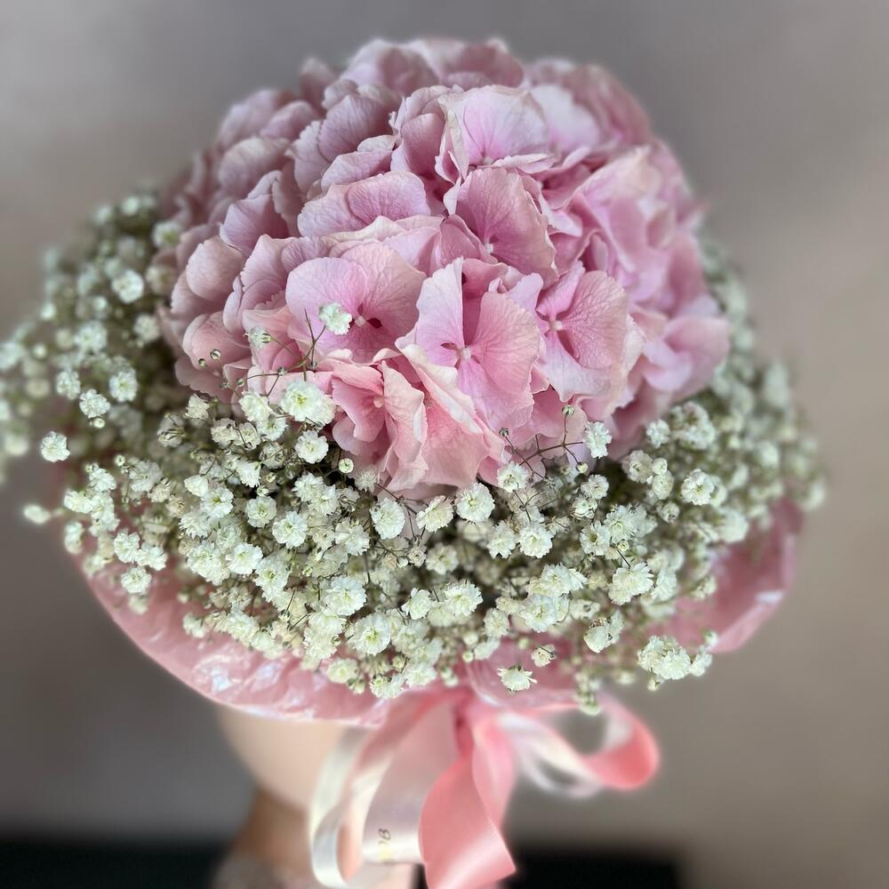Гортензия в шляпной коробке смотрится очень воздушно, мило и стильно. Так как гортензия объемная, это прекрасный бюджетный и в то же время небанальный вариант.Доставим быстро и бережно.* К сожалению, мы не можем гарантировать 100% копию букета. Ежедневно к нам в салон … Показать ещёприезжают свежие цветы и они могут отличаться друг от друга. Со своей стороны, мы гарантируем соблюсти состав и общий стиль вашего букета. При возникновении вопроса о замене дизайнерской упаковки – мы обязательно свяжемся с вами. Букет из живых цветов мы начинаем собирать после оформления заказа.