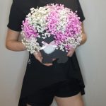 “Сиреневый туман” – композиция из гипсофилы в шляпной коробке