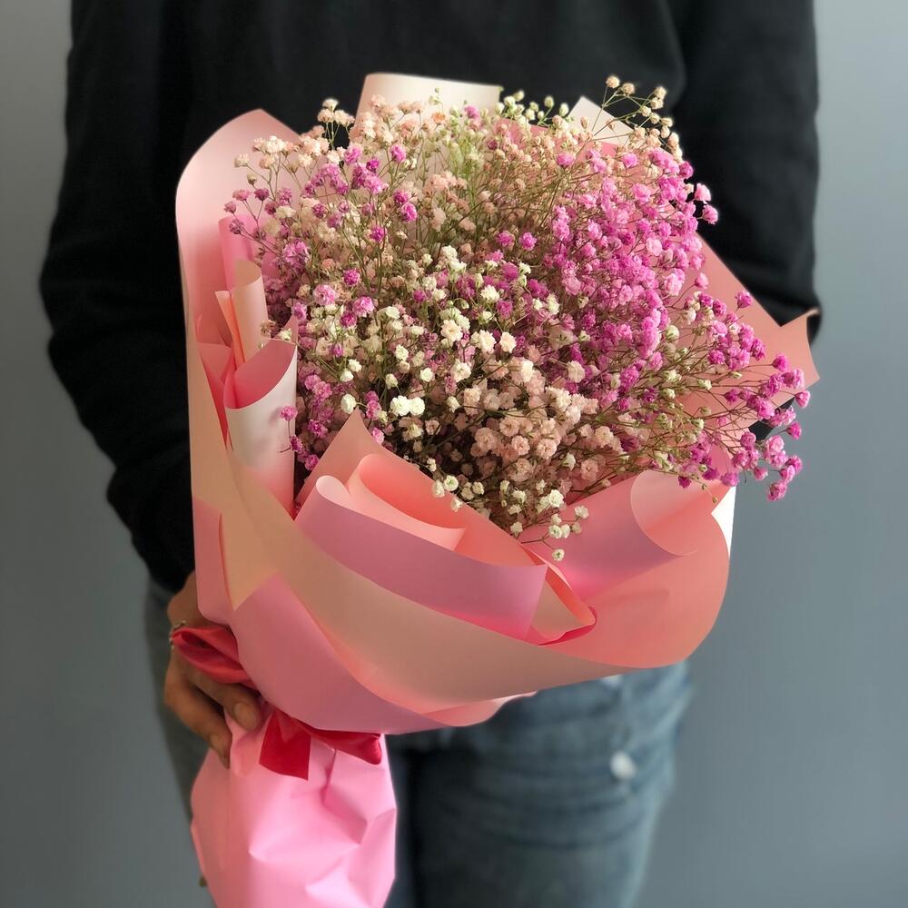 Гипсофила – 5 шт.Упаковка дизайнерская – 2 шт.Лента атласная – 1 шт.