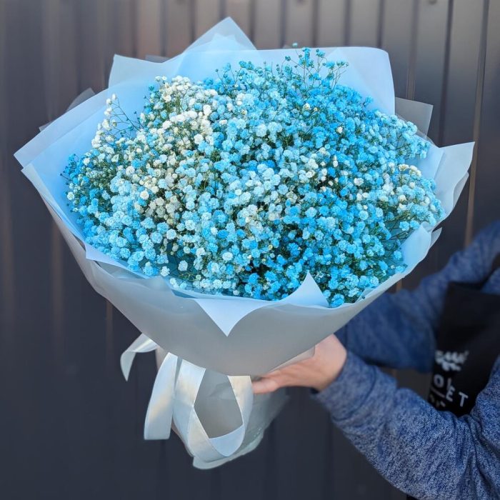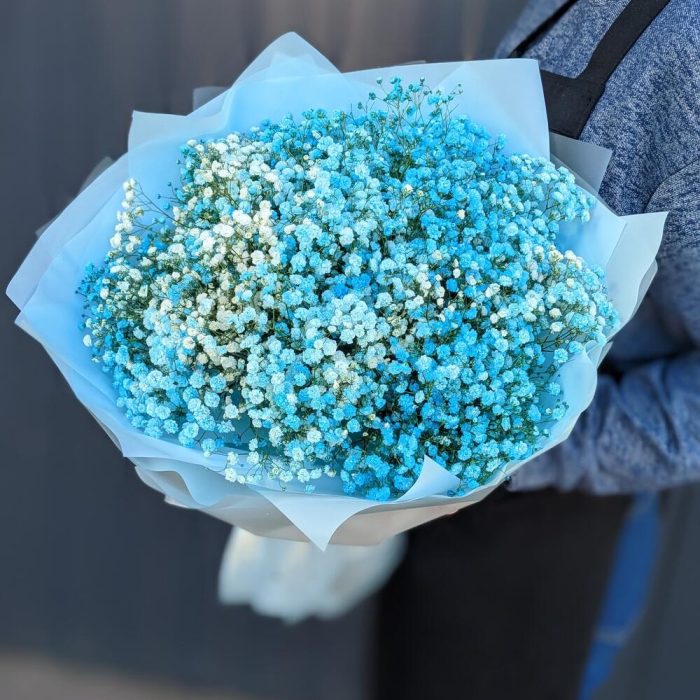 Монобукет из голубой гипсофилы