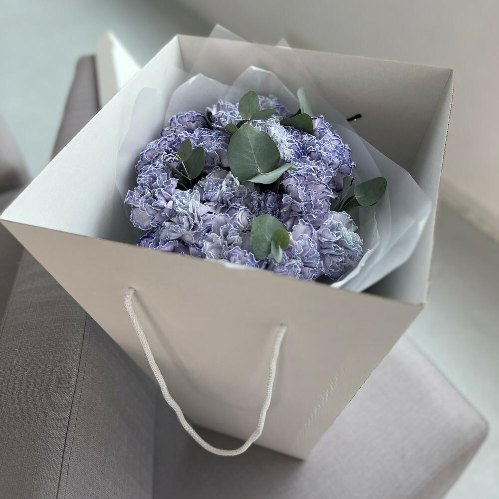 25 нежных гвоздик с эвкалиптом