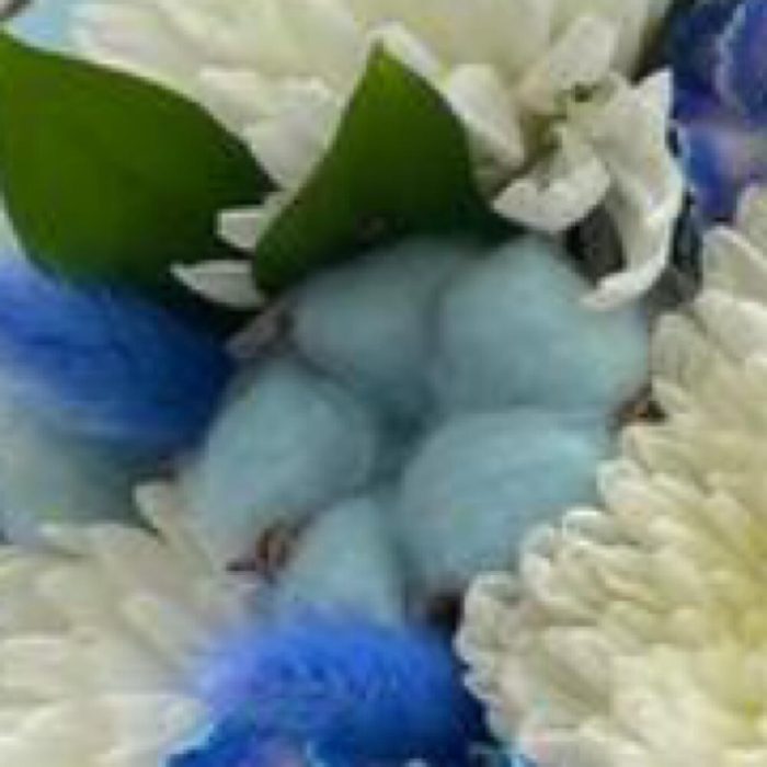 Гвоздика сортовая – 3 шт.Хлопок натуральный – 3 шт.Лагурус (сухоцвет) – 3 шт.антонов хризантема – 3 шт.