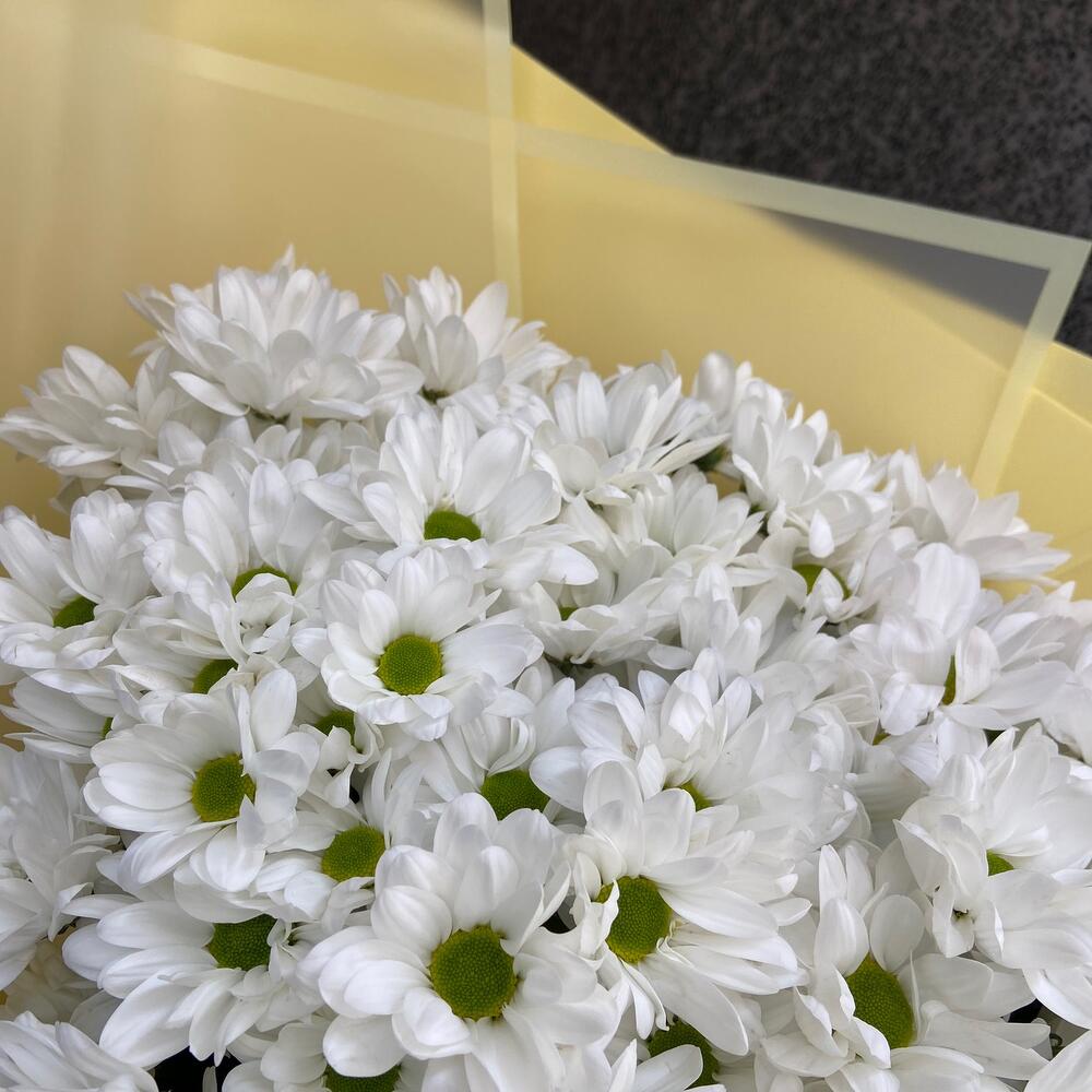 Лента атласная – 2 шт.Хризантема Ромашковая – 13 шт.Фоамиран (упаковка) – 4 шт.подложка бумажная – 2 шт.