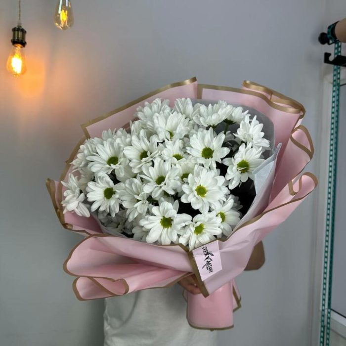 Букет из свежих Хризантем с шикарным оформлением