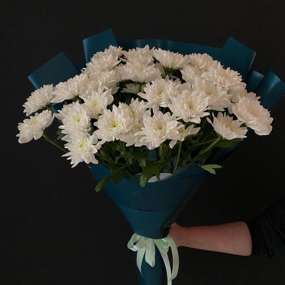 Хризантема Балтика – 7 шт. салфетка декоративная – 4 шт. Тишью – 2 шт. Лента атласная – 2 шт. Слюда упаковка – 2 шт.
