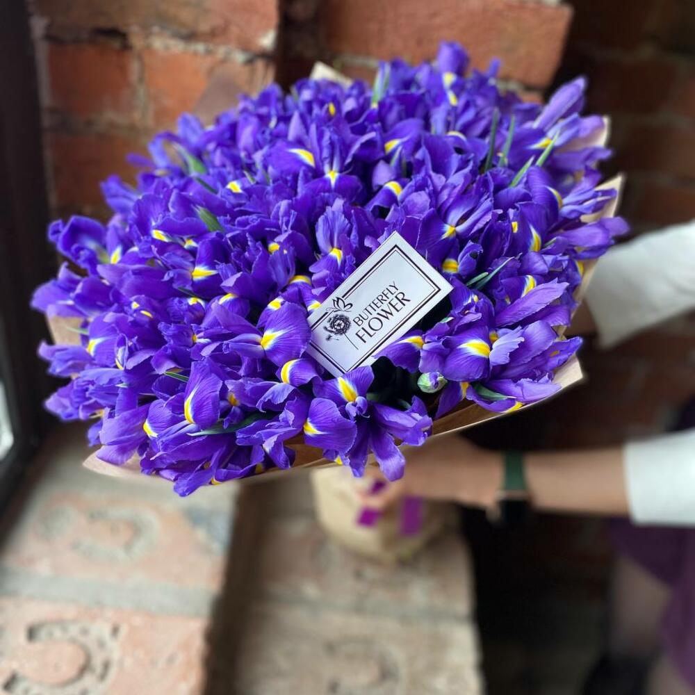 Букет из 75 ирисов в стильной упаковке “Стерлинг”