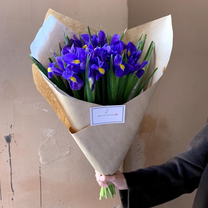 Крафтовая упаковка – 1 шт.ирисы синие – 15 шт.
