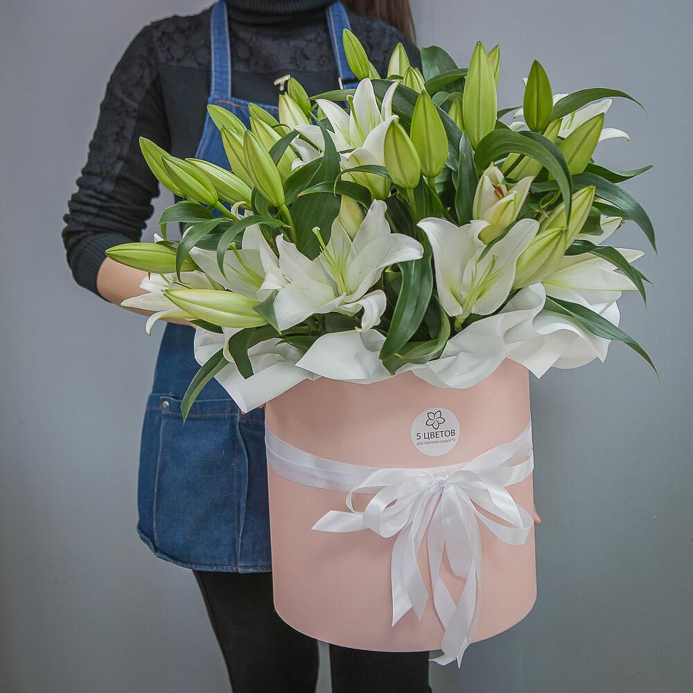 Букет из 11 белых лилий в шляпной коробке