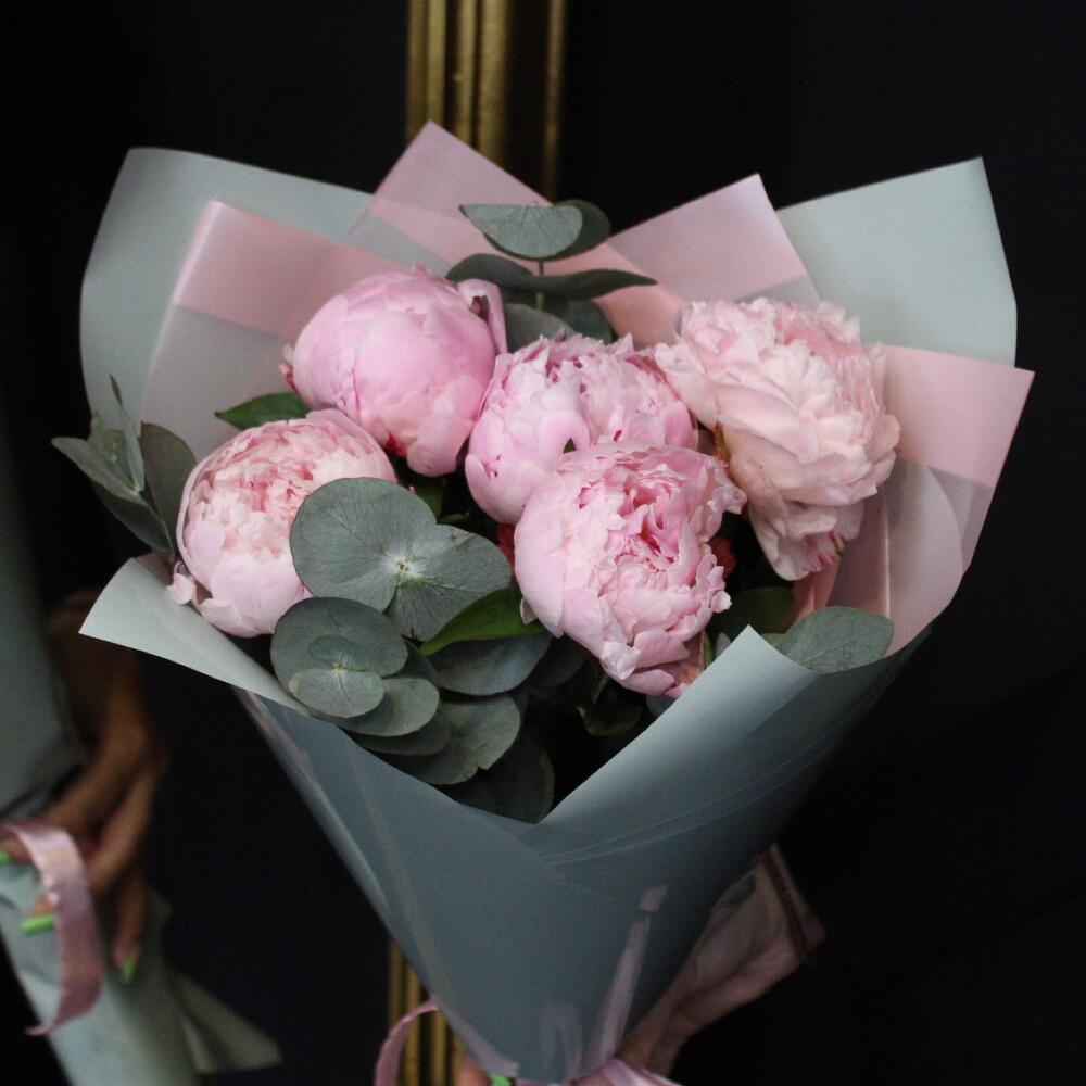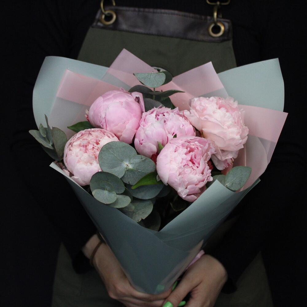 5 пионов Сара Бернар с эвкалиптом