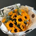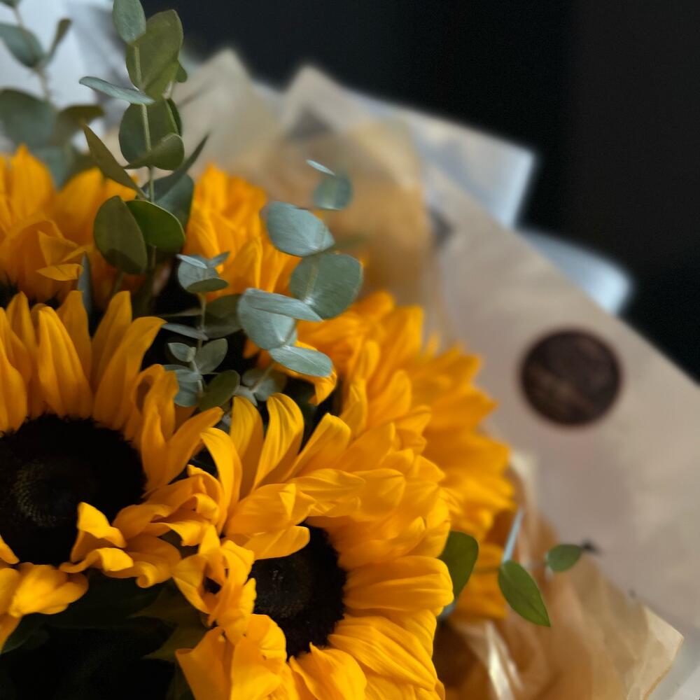 Букет из 9 подсолнухов в стильной упаковке "Прометей"