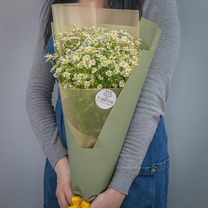 ромашки – 35 шт.дизайнерская упаковка и атласная лента – 1 шт.