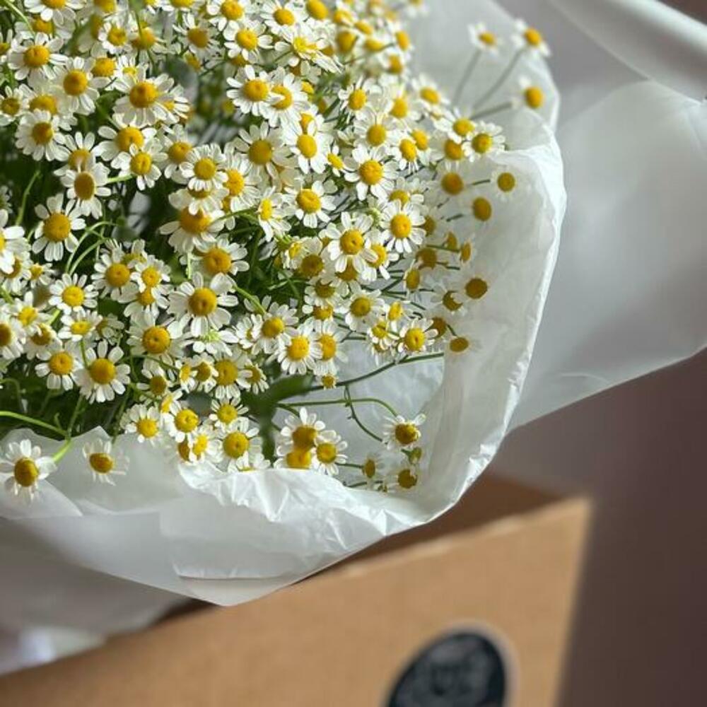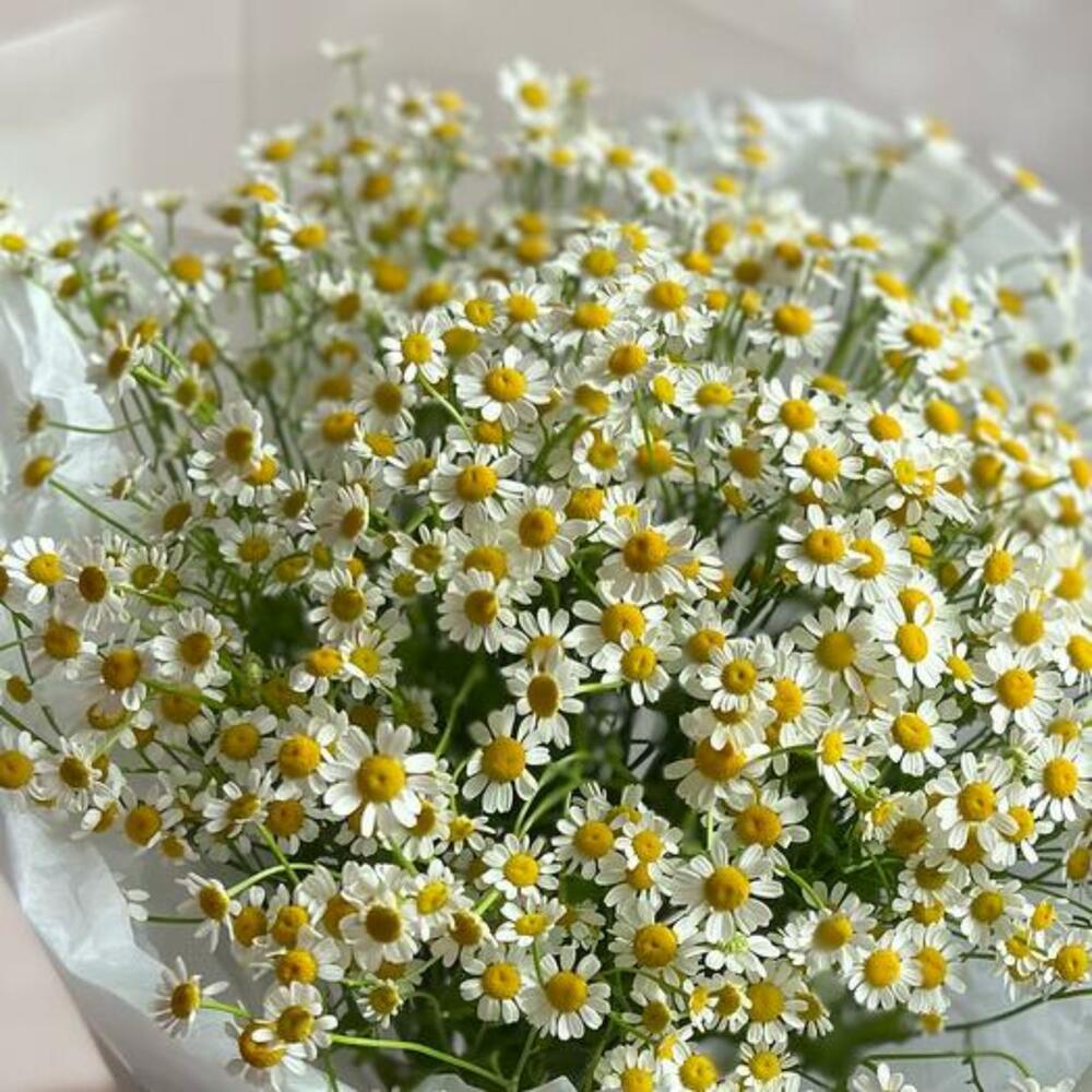 Атласная лента – 1 шт.Ромашка (матрикария) – 11 шт.декоративная упаковка – 2 шт.
