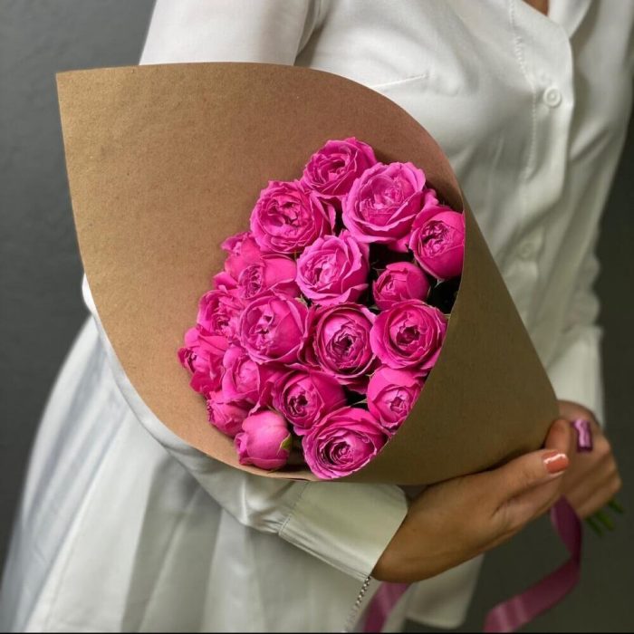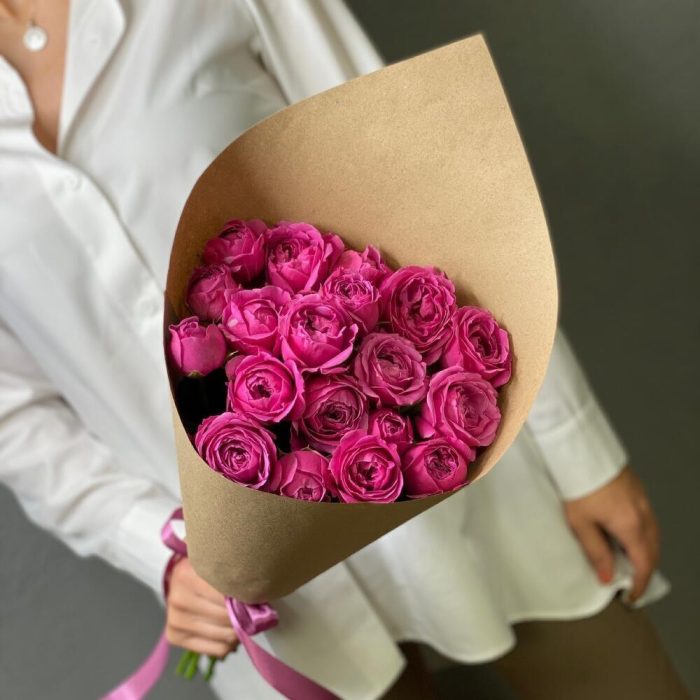 Пионовидные кустовые розы , сорт Мисти Баблс в крафт упаковке