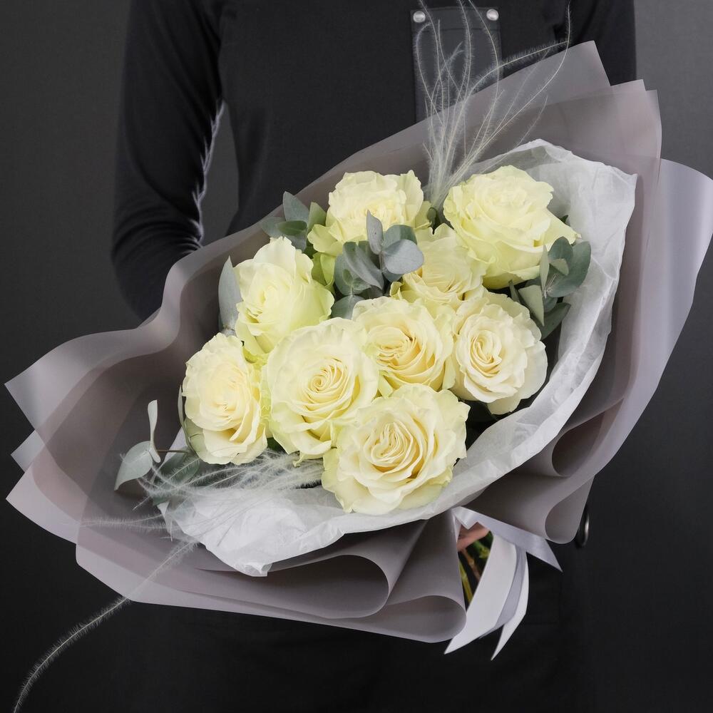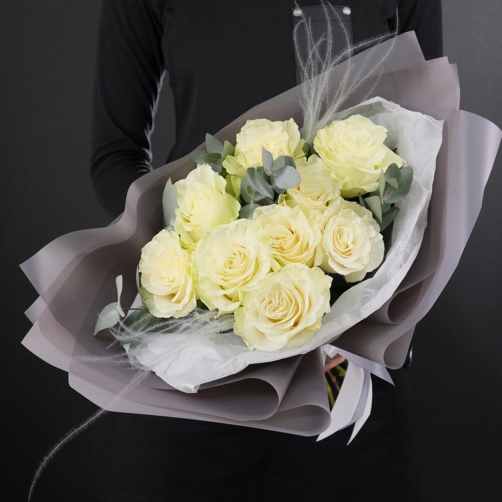 Эвкалипт – 1 шт.Упаковка – 1 шт.роза сорта мондиаль – 9 шт.