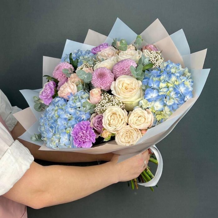 Категорий: Гвоздики, Гортензии, Кустовые розы, Пионовидные розы, Розы, Хризантемы