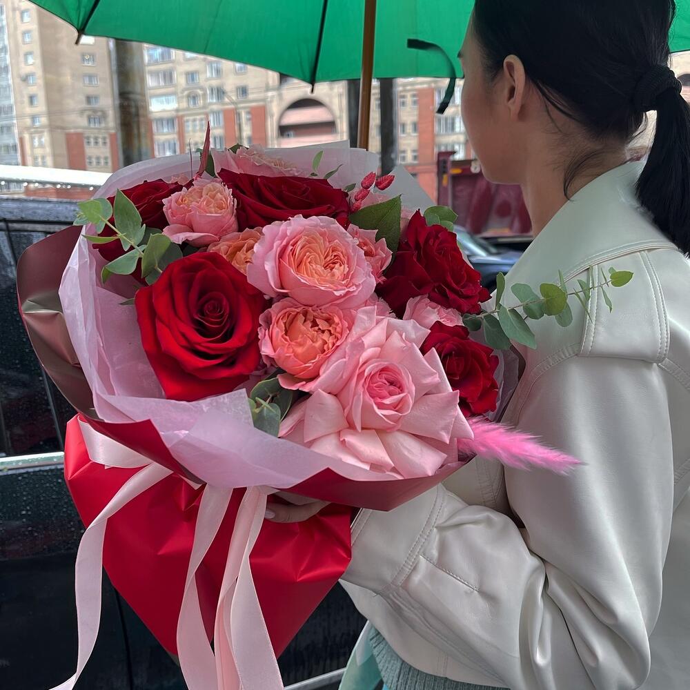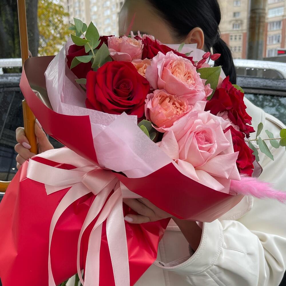 Авторский яркий букет с пионовидными розами