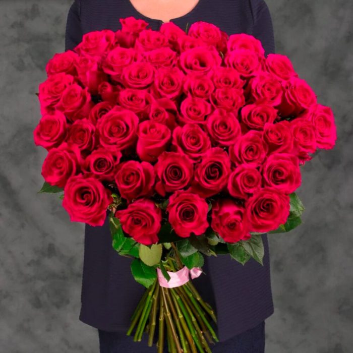Букет 55 розовых роз.