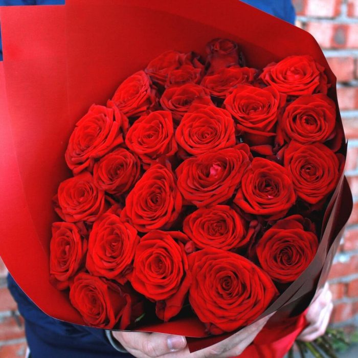 Букет из 25 красных роз (Эквадор) 70 см Freedom