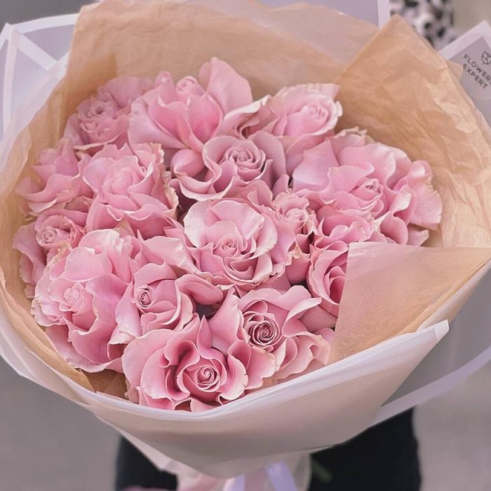 Роза пинк мондиаль – 15 шт.Упаковка дизайнерская – 1 шт.
