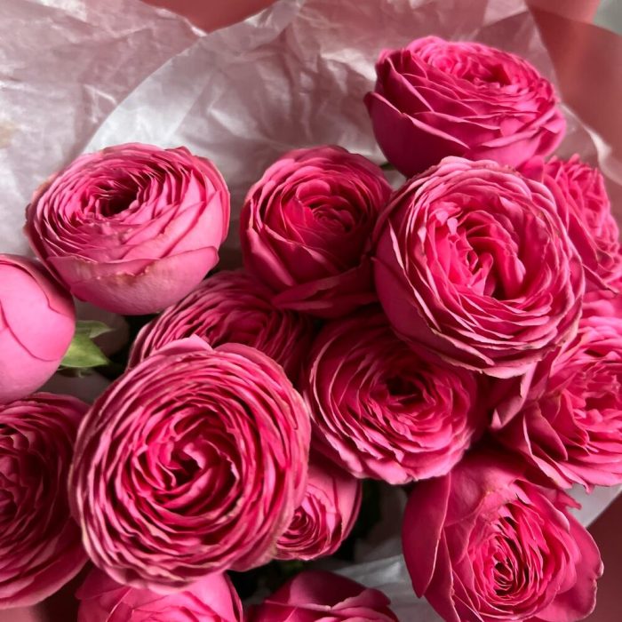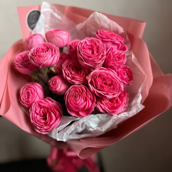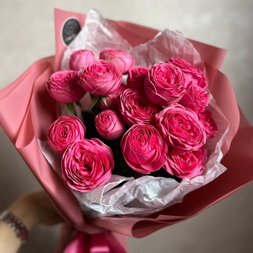 Букет из кустовой пионовидной розы "Малиновый фрэш"