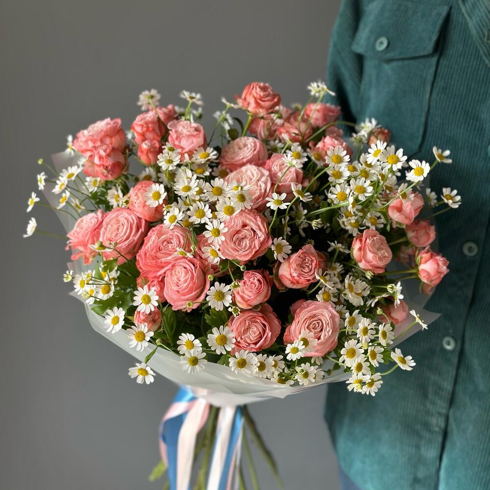 Букет из кустовой розы Бомбастик и Ромашки Матрикарии