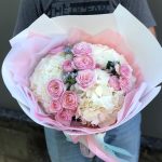 Букет из пионовидной розы, гортензии и оксипеталума «Нежность»