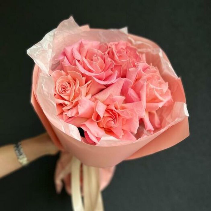 Одноголовая роза – 5 шт.декоративная упаковка – 1 шт.Атласная лента – 1 шт.