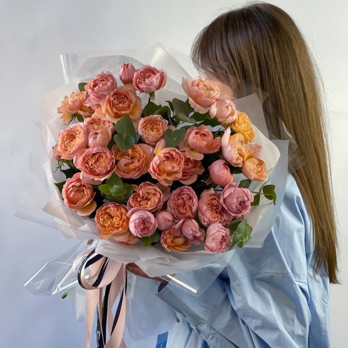 Букет с кустовой пионовидной розой «Нежная Джульетта М»
