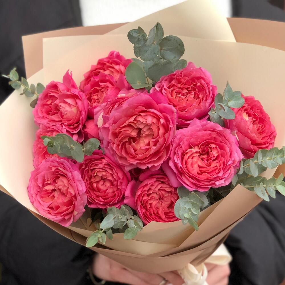Бархатные французские розы с эвкалиптом, 7 штучек