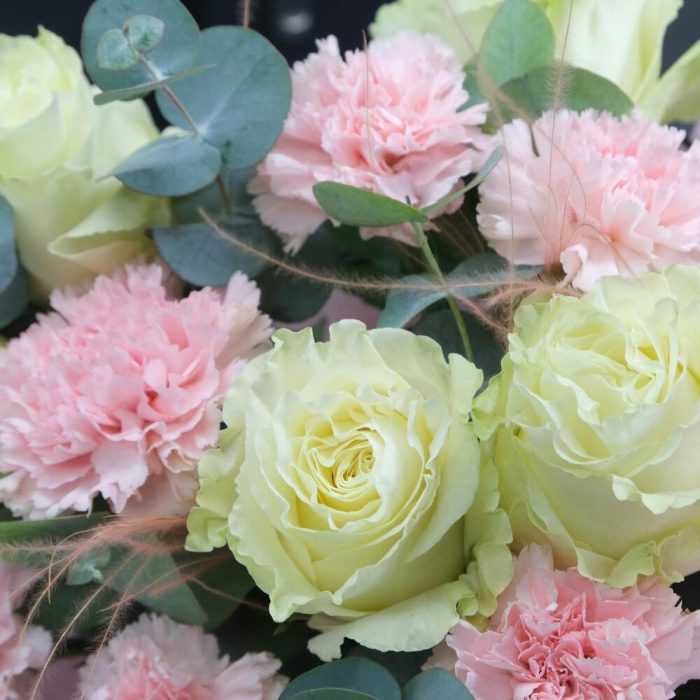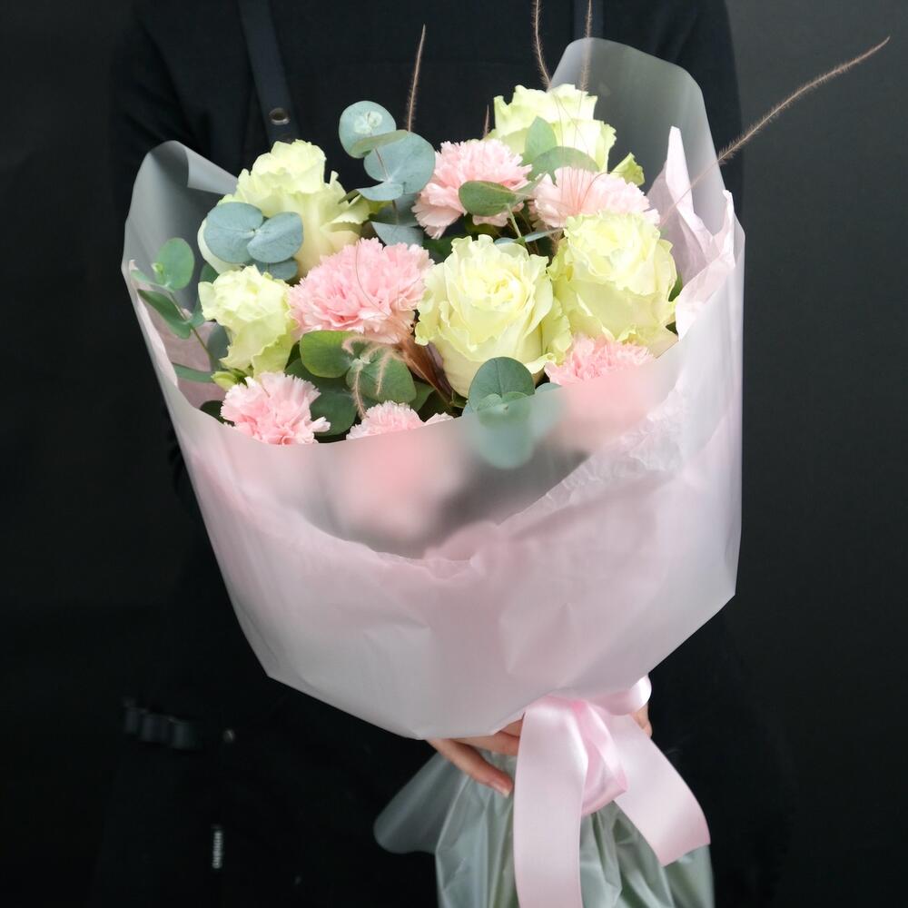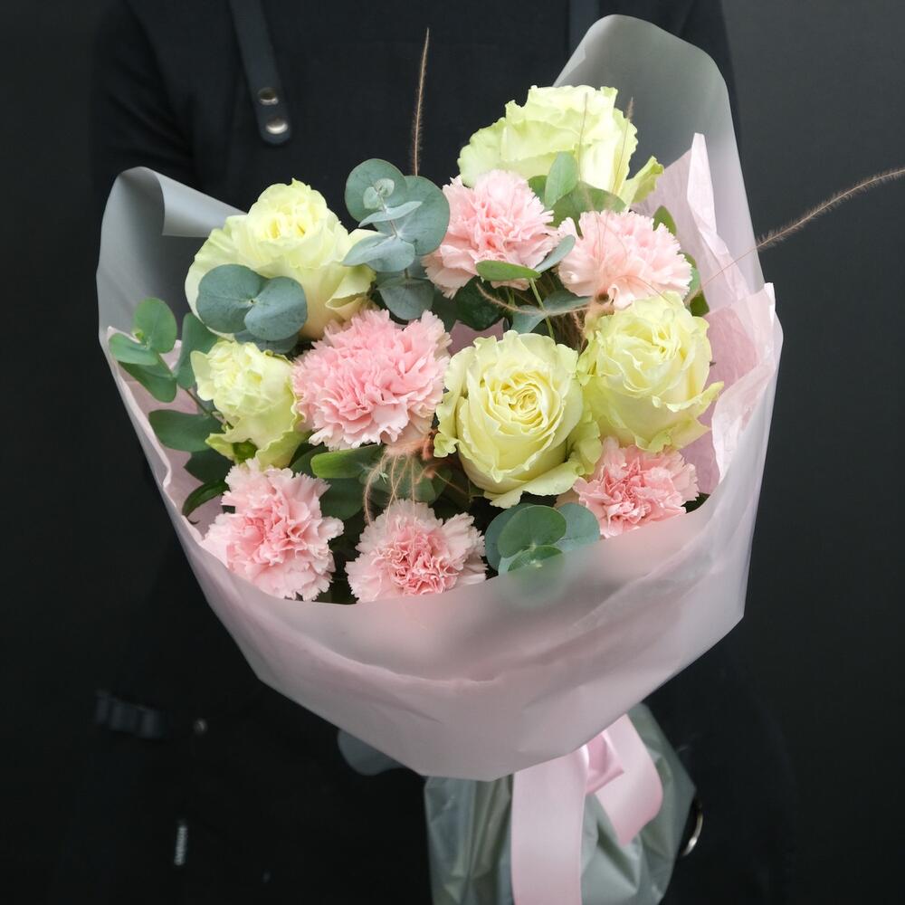 Гвоздики, Кустовые розы, Лизиантусы, Пионовидные розы, Розы