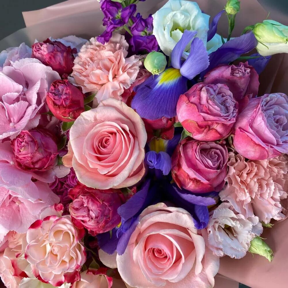 Категорий: Альстромерии, Гвоздики, Гортензии, Ирисы, Лизиантусы, Розы