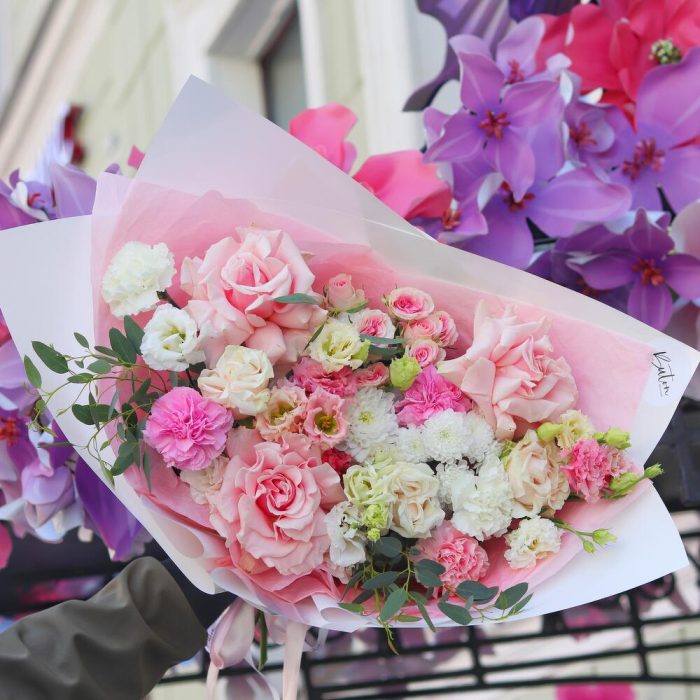 Категорий: Гвоздики, Кустовые розы, Лизиантусы, Пионовидные розы, Розы, Хризантемы