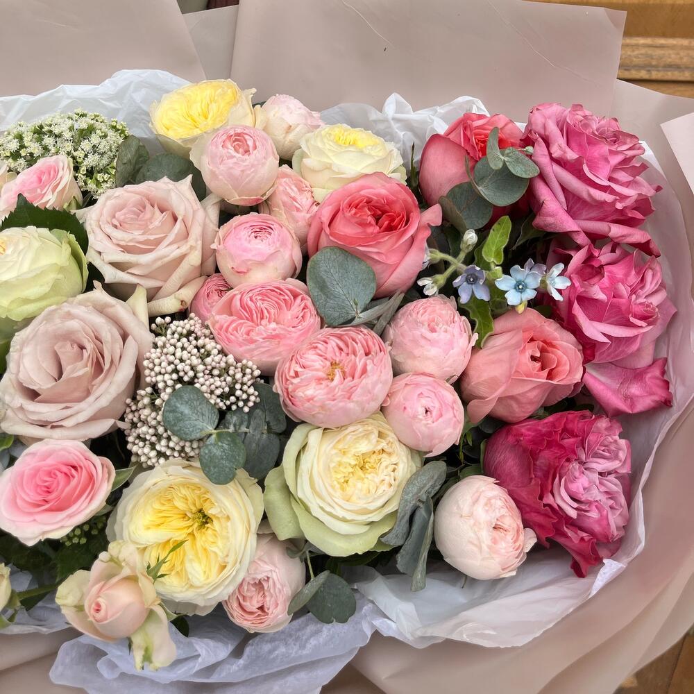 Гвоздики, Кустовые розы, Пионовидные розы, Розы