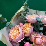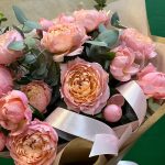 Пионовидные розы с эвкалиптом, 15 штук
