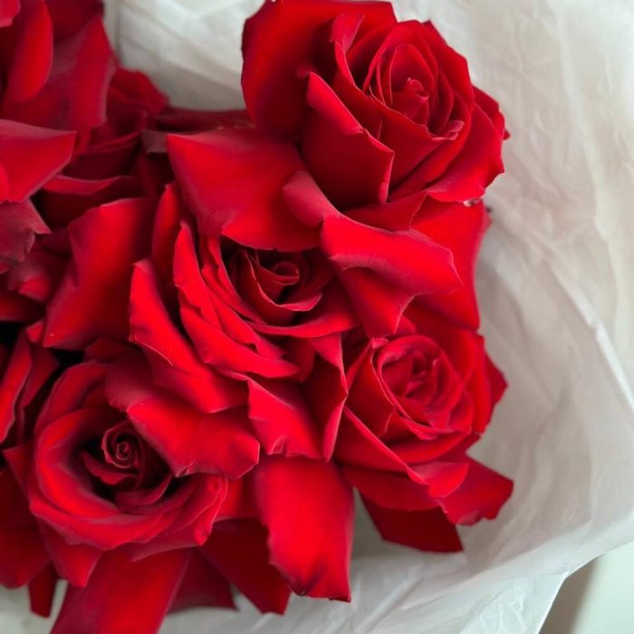 Яркий и элегантный букет из бархатных вывернутых красных роз в эффектной белой упаковке – идеальное решения для того, что бы подчеркнуть особенность самого важного события!Особая техника обработки делает бутон больше обычного.Стойкость таких бутонов, как у садовой пионовидной розы от 3-5 дней