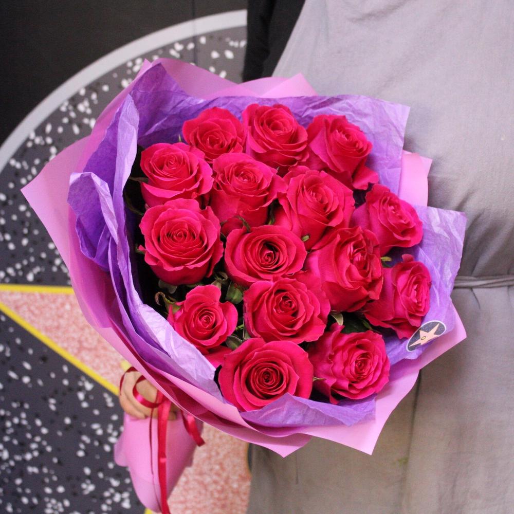роза эквадор готча – 15 шт.Пленка дизайнерская – 2 шт.Лента атласная – 1 шт.