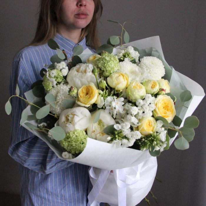 Лимонный щербет - Букет с пионами и пионовидными розами