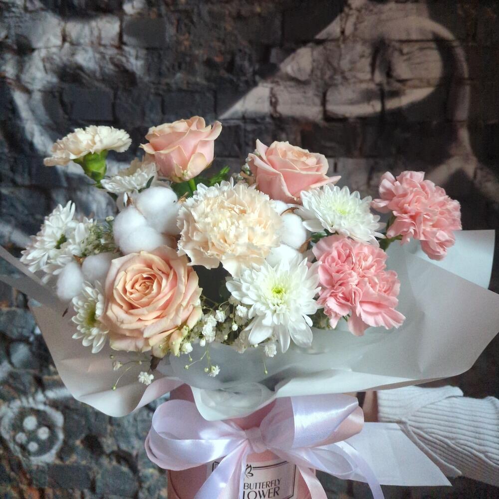 Категорий: Гвоздики, Гипсофила, Кустовые розы, Розы, Хризантемы