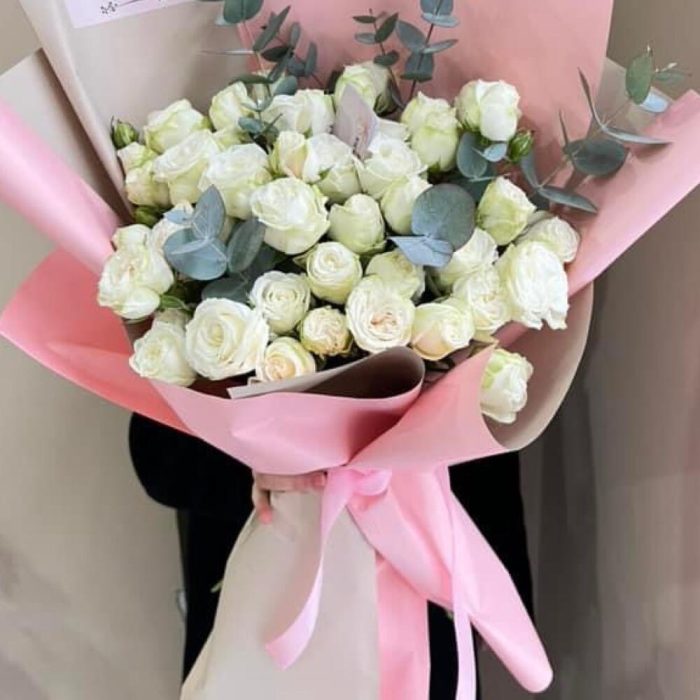 Эвкалипт – 3 шт. кустовые розы белые – 11 шт.