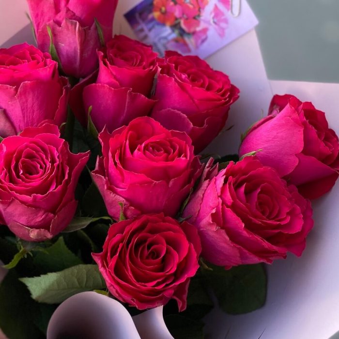 Роза – 9 шт.Упаковка – 1 шт.Лента – 2 шт.Открытка мини – 1 шт.