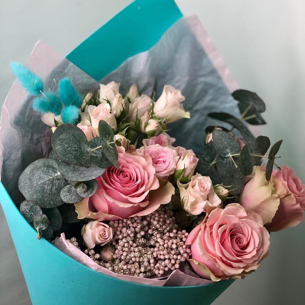 Гвоздики, Кустовые розы, Лизиантусы, Пионовидные розы, Розы